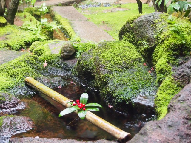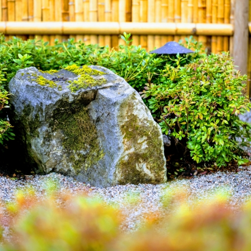 Avoid wasting resources by incorporating natural materials into your garden, such as boulders and bamboos instead of processed stones.