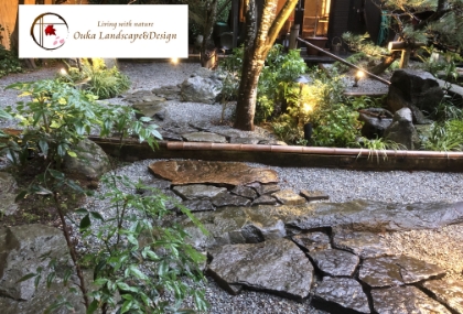 Even in modern designs we consider using the traditional method such as “Karesansui” 枯山水.