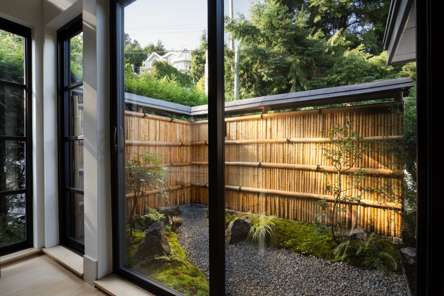 Serene landscape design from inside the house